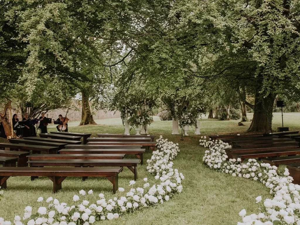 It is also important to consider the size of your ceremony venue when putting together your ensemble. If your venue is inside, you will have more options because of the nature of the room acoustics. If you have an orchestra in a tiny chapel, for example, it may not be suitable. If your ceremony will be in an outdoor space, look at the logistics of power points and space configurations. Some instruments also might not work as well outdoors. The harp, for example, is quite strong as the sound tends to drift upwards so it might get lost in an outdoor space. Plan ahead for an outdoor setting so you are prepared with microphones and enough musicians to combat the outside noise.